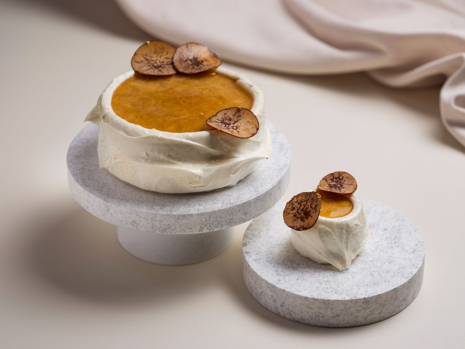 「甜品,是一場感官與記憶的對話。」胡主廚的創作靈感來自大地風味與四季更迭,偏愛以當季食材為主角,雕刻最本真的風味,以經典為基礎透過口感、溫度與香氣的對比堆疊,例如酥脆與綿滑、溫熱與冰涼、甜蜜與微苦之間的張力,為甜味賦予「起承轉合」的詩意:第一口是驚喜、最後一口的難忘餘韻,讓甜點從「好吃」昇華為「難忘」。