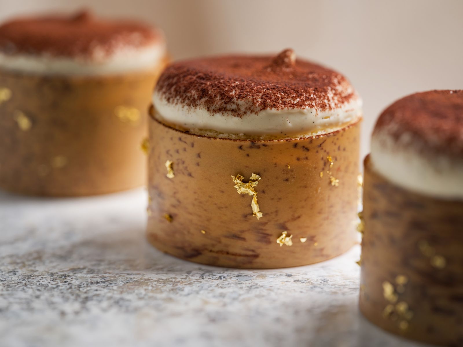 「義式經典的酒香變奏」,主廚風格詮釋經典甜品提拉米蘇,以三重甜酒昇華醇厚香韻,結合義大利杏仁香甜酒及Marsala葡萄酒、Kahlúa咖啡酒,融萃堅果甘甜香氣並釋放咖啡的溫暖深邃層次,浸潤咖啡甜酒的蛋糕基底,添以馬斯卡彭奶霜的豐盈柔美,描繪當代的義式浪漫味蕾故事。